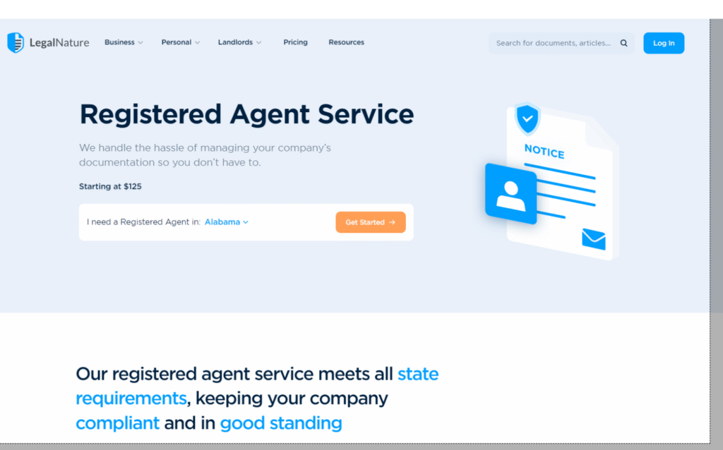 LegalNature’s registered agent service starts at $125, which puts it right in line with the range I expect from reputable nationwide providers. That won’t make it the absolute cheapest option on this list, but it’s fair pricing for a service that gives you compliance coverage plus a broader legal-business platform behind it.